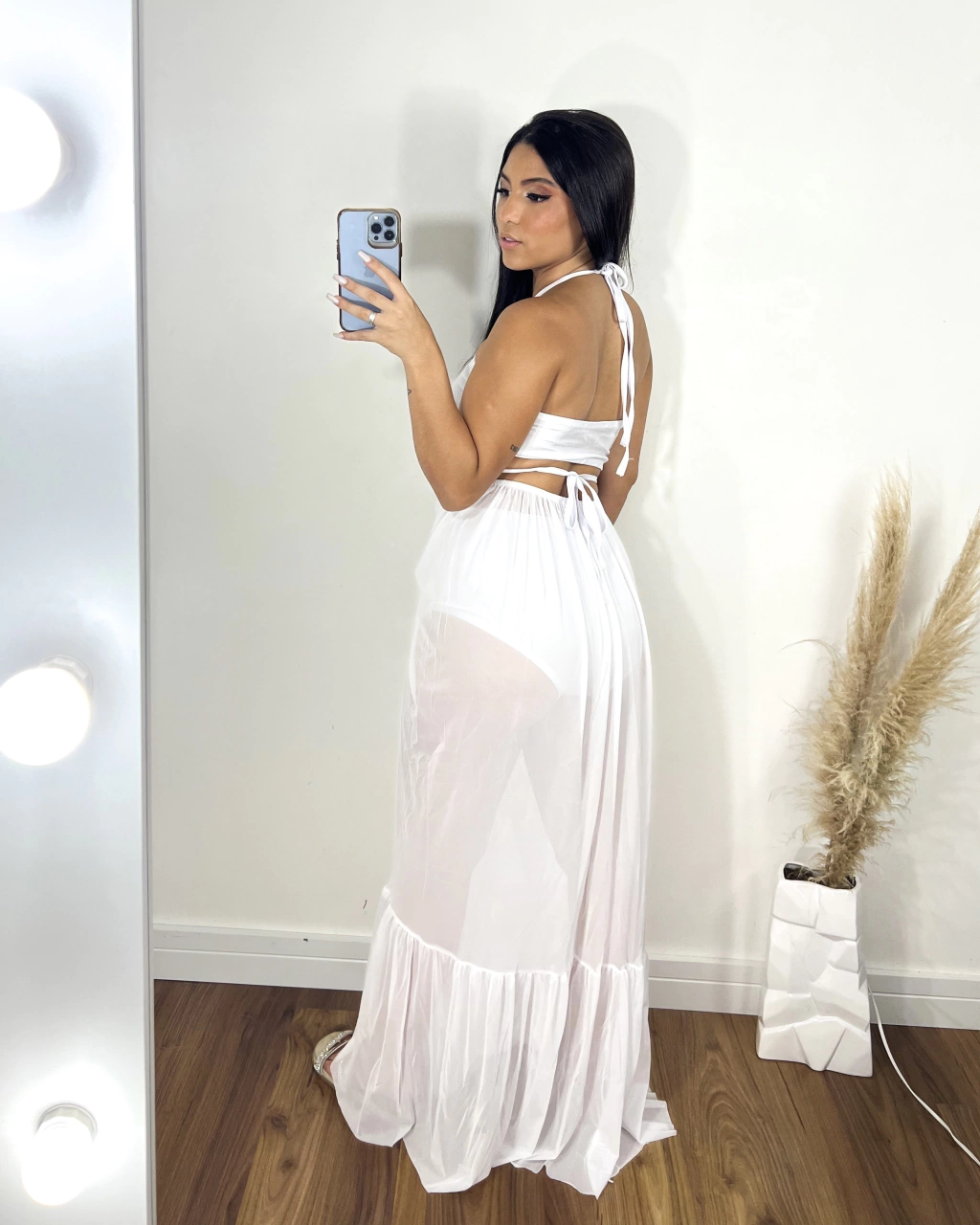 •saia em tule com fenda na lateral e detalhe em argola