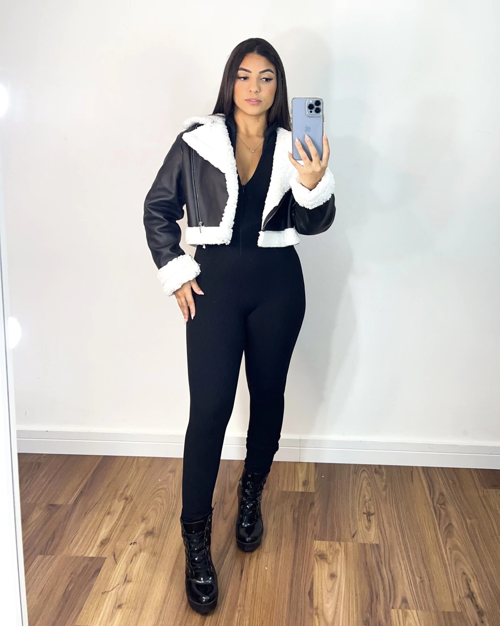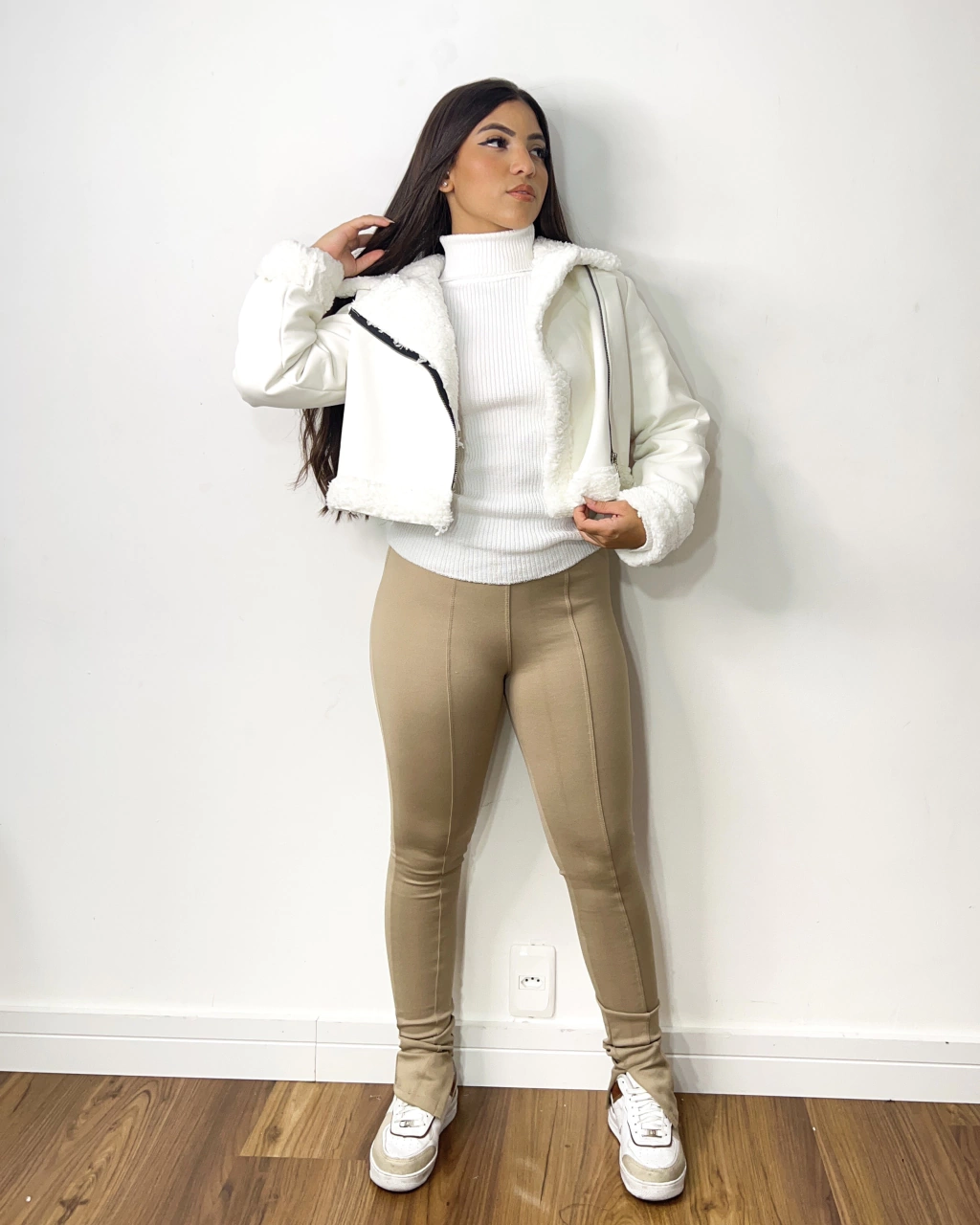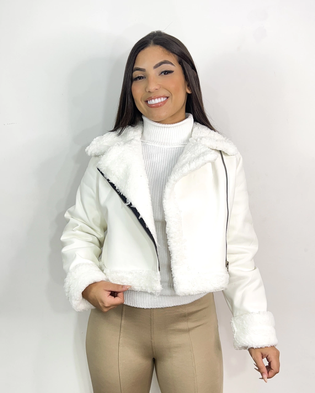 totalmente peluciada por dentro (até mesmo nas mangas) e couro fake por fora. A jaqueta ideal para os dias frios, deixando você 100% quentinha!