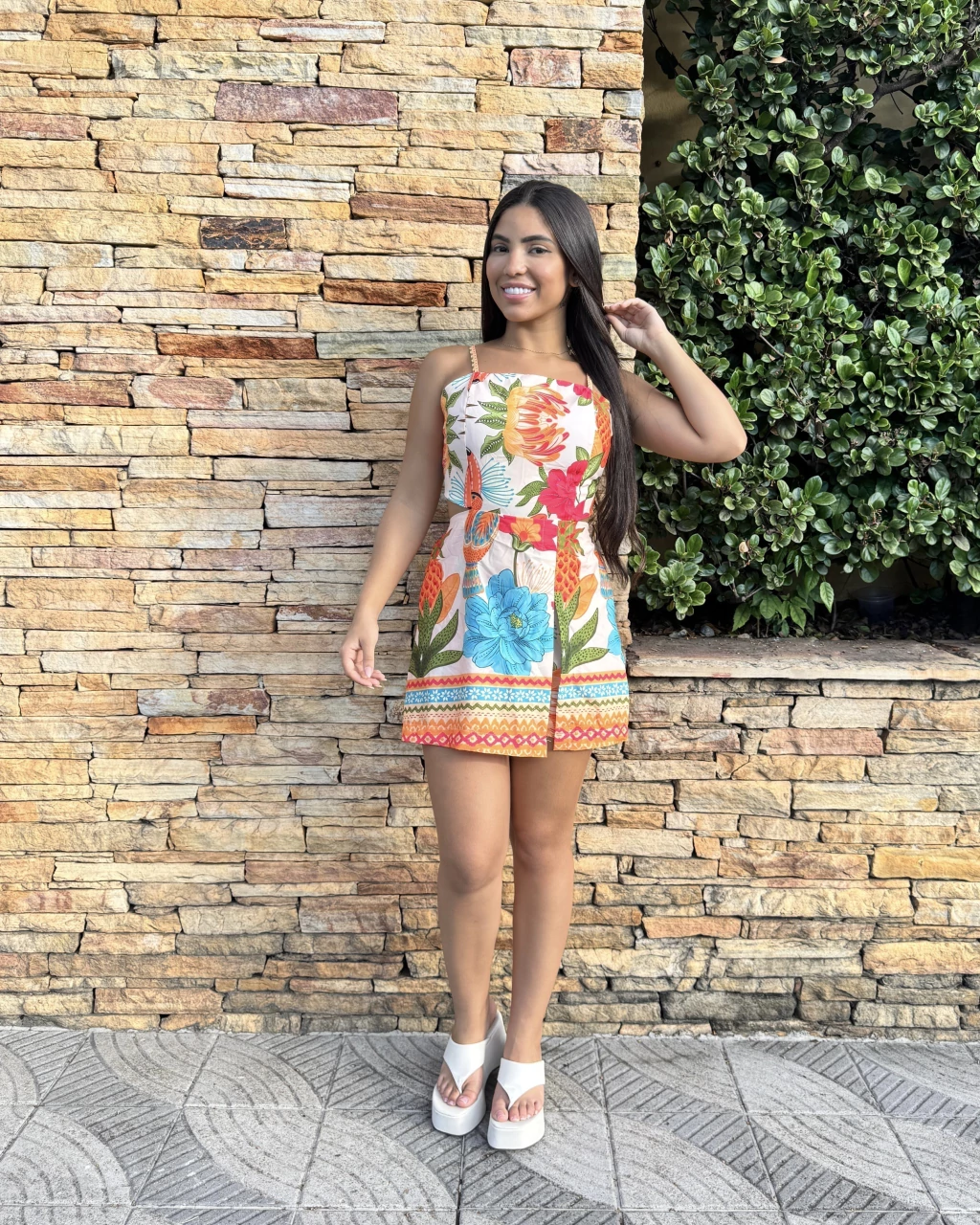 Com amarração nas costas e regulagem na alça, você pode customizar o look. A fenda frontal adiciona um toque arrojado, ideal para qualquer ocasião.