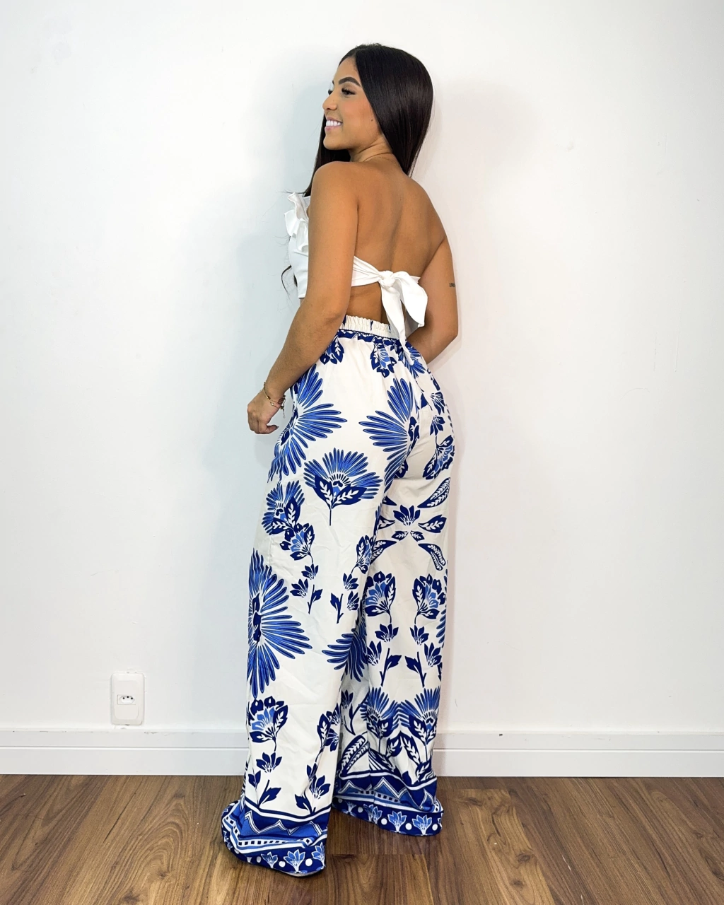 Calça Pantalona Estampa Azul e Branca: a escolha perfeita para quem valoriza conforto e estilo!