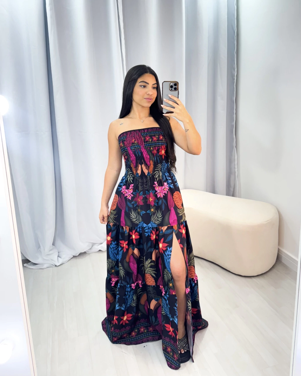 Estampa azul tucano Estampa amarelo manteiga Estampa verde menta Estampa floral rosa Estampa azul escuro Estampa azul claro Estampa folhas vinho Estampa folhas azul Estampa preta abacaxi